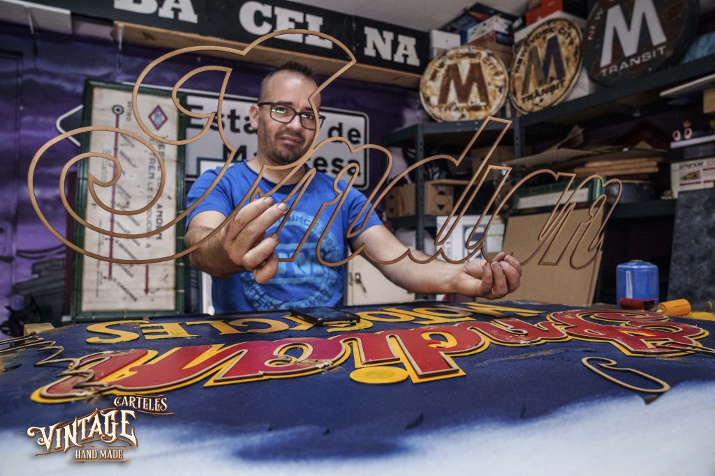 Detalle del cartel vintage efecto chapa galvanizada ya finalizado.