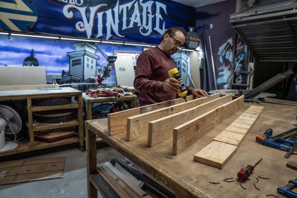 Este cartel realizado íntegramente con palets reciclados y bombillas led con letras corpóreas oxidadas y un look muy vintage, es una pieza perfecta para decorar tu negocio con tu nombre y tu logo de una manera muy diferente, personal y 100% vintage. Letras corporeas 2cm grosor, logo + slogan 1 cm grosor, Medida cuadro 150x57x5 cm.