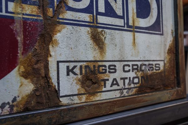 Este cartel es una réplica única, inspirada en señalizaciones originales del sistema de metro London Underground, específicamente de la estación King’s Cross, de aproximadamente 1910. Diseñado con precisión y un elaborado proceso artesanal, captura con perfección el carácter envejecido y oxidado que han acumulado las señales históricas durante más de un siglo.